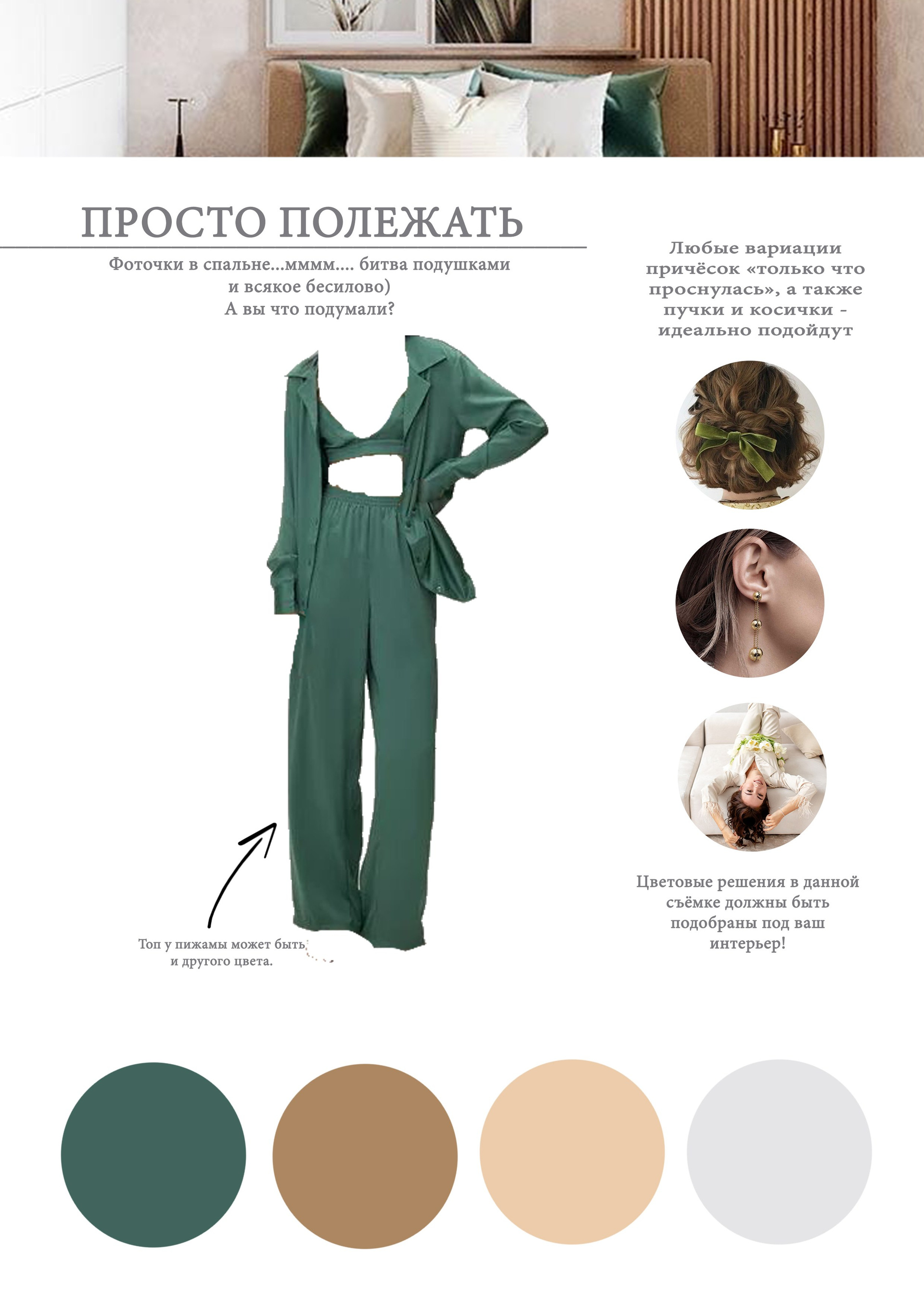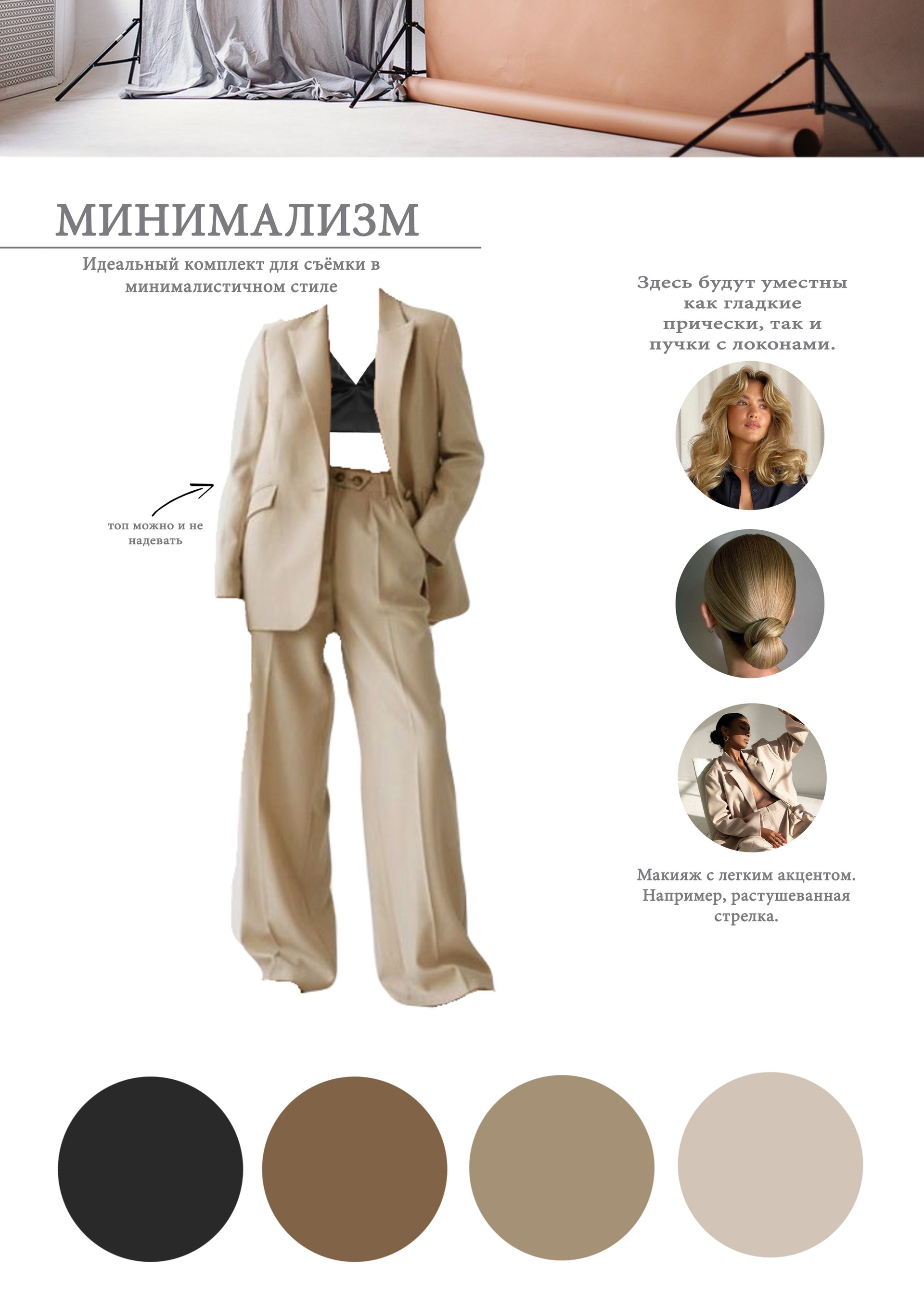 Придерживайтесь данным рекомендациям по образам, чтобы наша съемка выглядела гармонично. Данные рекомендации созданы для зала «Balcone»