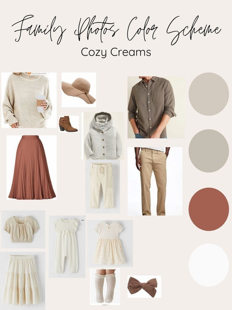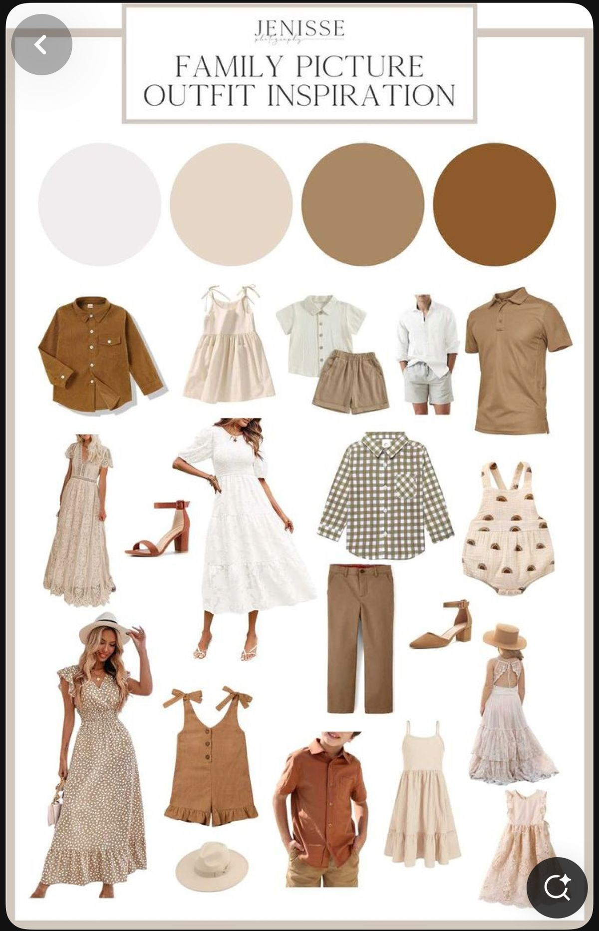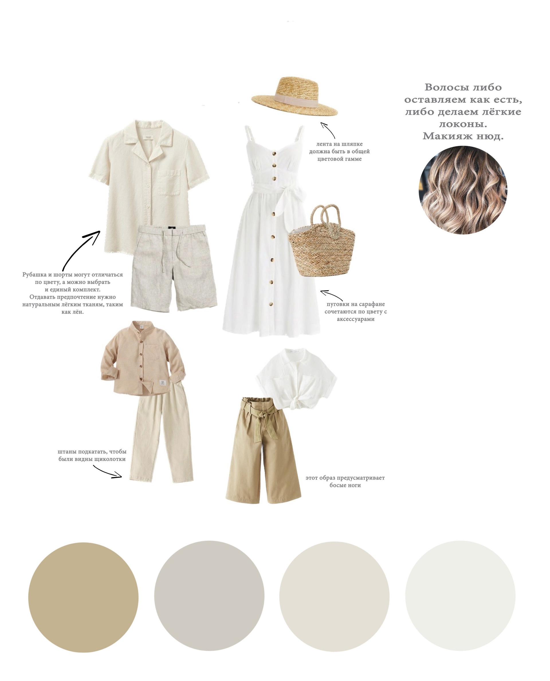 Подходящая палитра указана ниже, я прикреплю примеры образов одежды для всей семьи. Если нет вариантов в данных палитрах — нас спасет образ в белом. Постарайтесь достать все из гардероба и подобрать похожие вещи исходя из данных рекомендаций. Если у вас возникнут проблемы в подборе образов или вопросы — В самом низу нажмите на кнопку «Помощь»