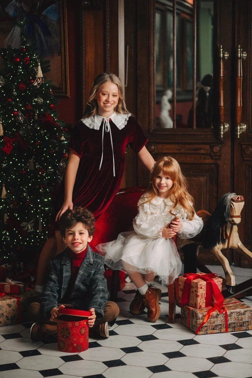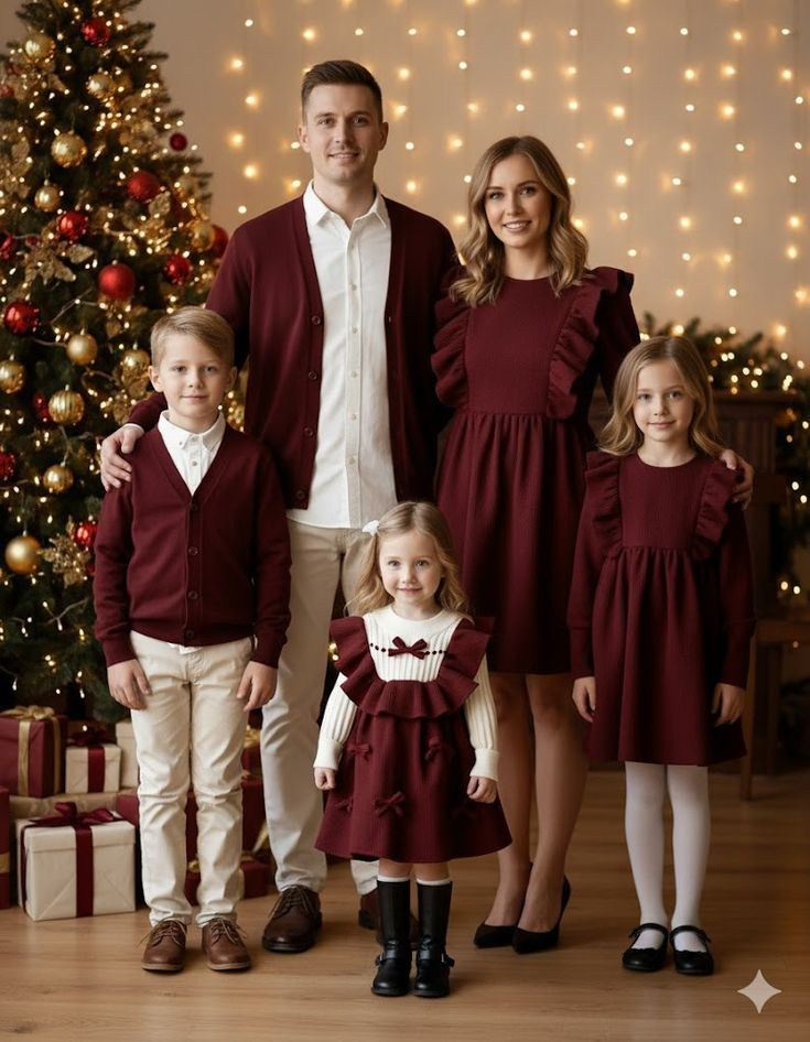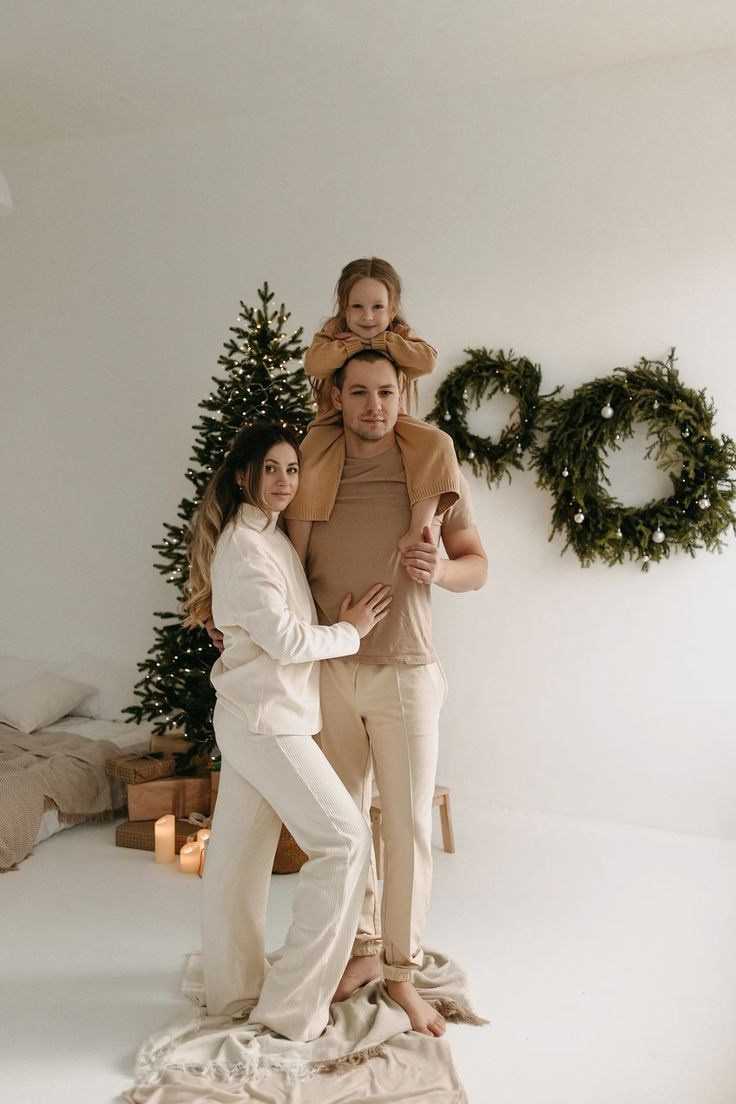 P.s Палитра подходит под оба зала. Образы включают в себя уютные варианты такие как — пижамки, домашние костюмы, уютные свитера. Так и праздничные — в зале вечерние платья. Если мы выбираем уютный вариант — то вся семья должна быть в уютных образах. Не допускается вариант, что мама у нас в вечернем платье, а дети в пижамах.