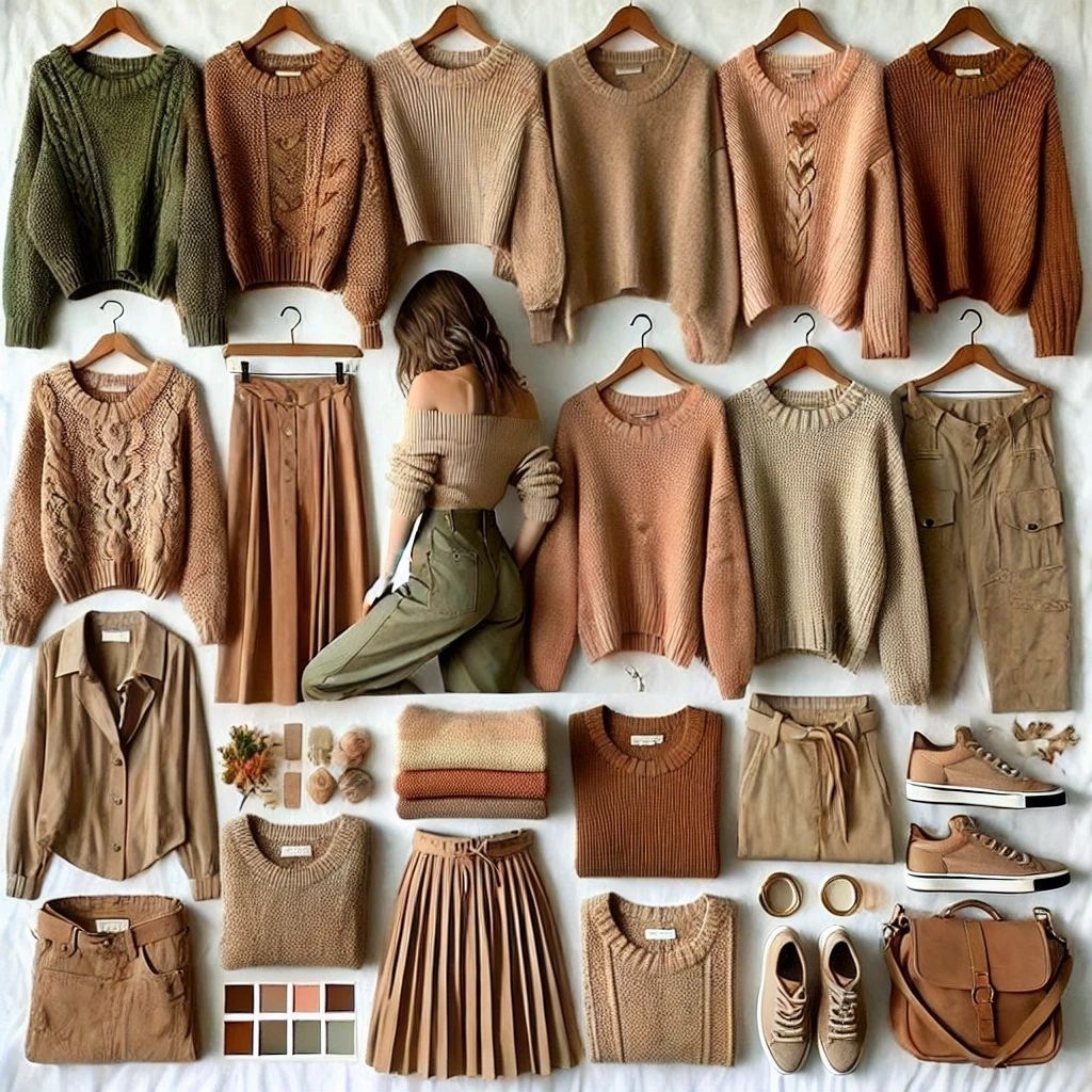 4) Любые осенние цвета — коричневые, оранжевые, желтые, изумрудный (+ хаки) зеленый.